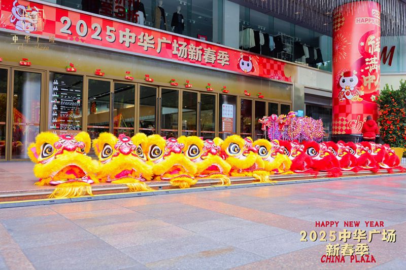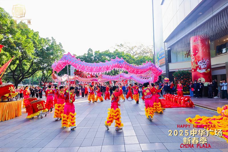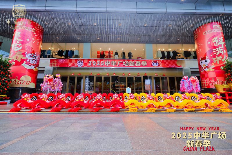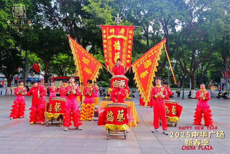 广州中华广场2025年新春寺吉大型舞狮表演-协艺龙狮团